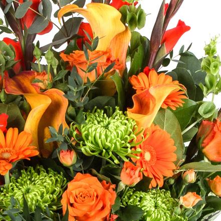 A lavish gift of exotic orange and lime blooms presented in a stylish gift bag.