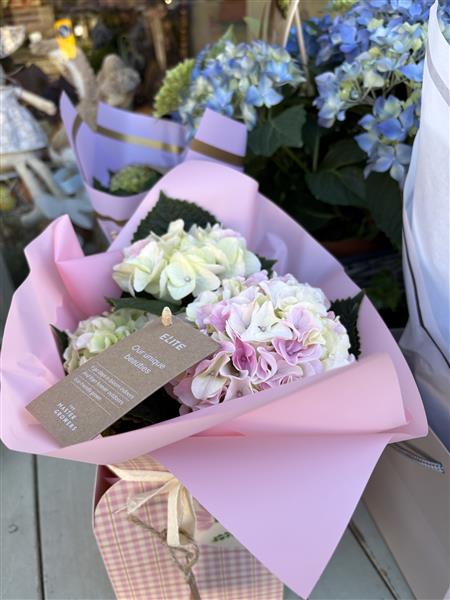 Pink Hydrangea in gingham gift box