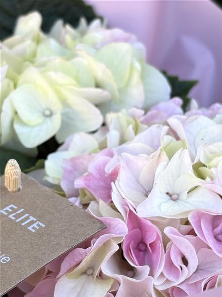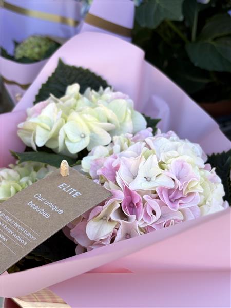 Pink Hydrangea in gingham gift box zoom 2Pink Hydrangea in gingham gift box zoom 3