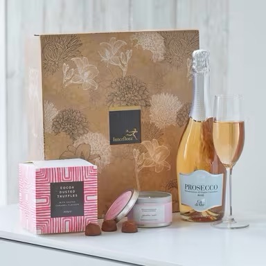 Prosecco Rose, Salted Caramel Flavour Truffles & Candle gift set